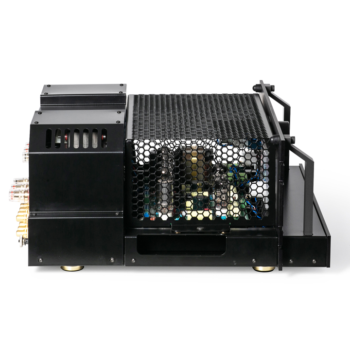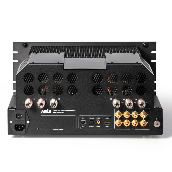 Ультралинейная схема, где потенциал экранирующей сетки формируется не резисторами, а специальными отводами с первичной обмотки выходного трансформатора, позволяет получить максимально широкую АЧХ без применения ООС, что в свою очередь, весьма благотворно сказывается на динамике и глубине сцены. Максимально короткий тракт - входной буфер-фазоинвертор-оконечный каскад, и применение специализированных межкаскадных металлобумажных конденсаторов, сводят к минимуму собственное влияние усилителя на сигнал и позволяют слушателю наслаждаться музыкой, не отвлекаясь на технические подробности.